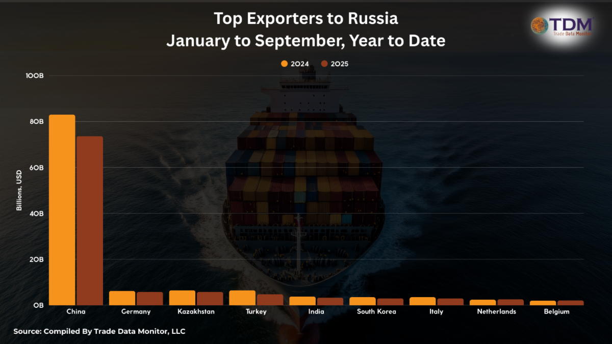 4. How Vietnam is Winning Global TradeAt TDM, we’ve been talking about Vietnam’s promise for a decade, so we’re not surprised to see its strong export numbers. The remarkable thing about Vietnam isn’t that it has become an export machine, it’s that its manufacturing capacity has increased across so broad a base. 5. Russia’s Shrinking Import DemandRussia still isn’t publishing trade statistics, but thanks to the breadth of TDM’s database, we can look at which countries are shipping to Russia. Those exports to Russia are mostly shrinking, an indication of the battering Russia has been taking from the war. The IMF and other institutions predict Russian GDP growth of only around 1% in 2026. |