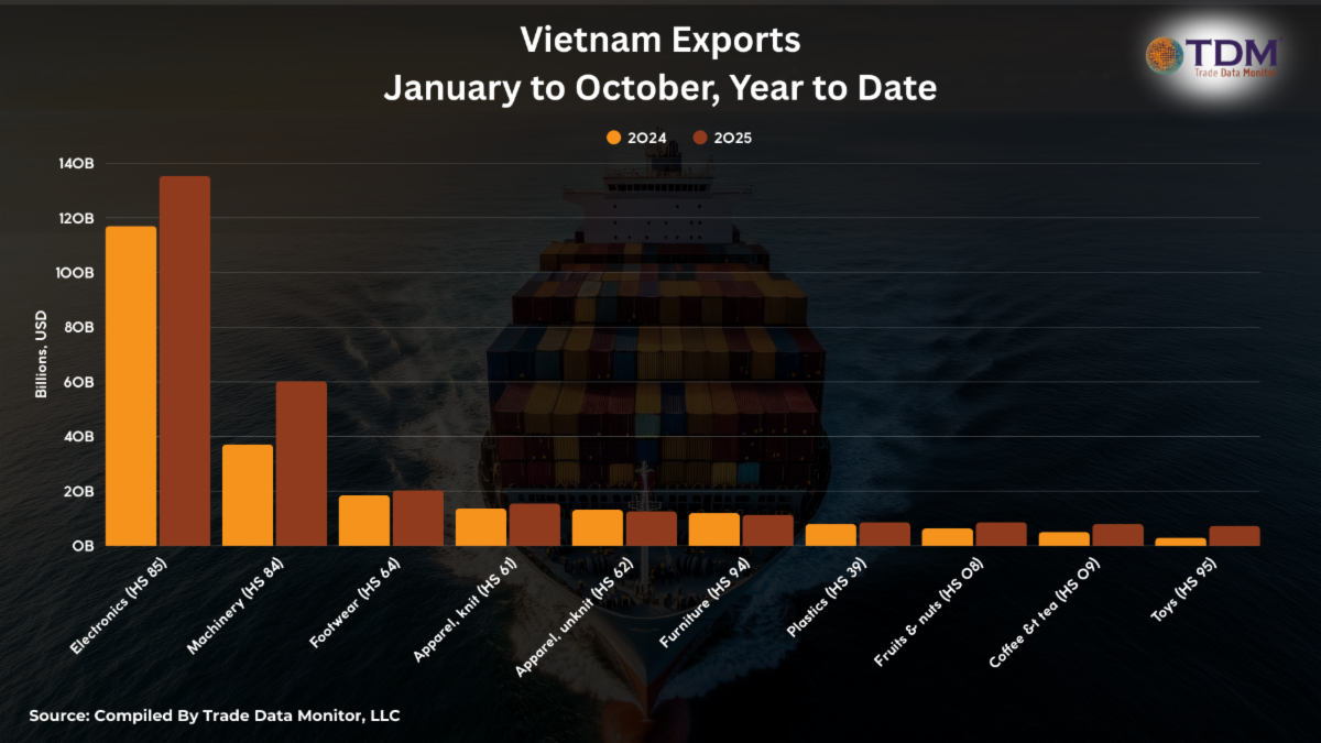 | Happy New Year. While we wait on the Supreme Court to rule whether the Trump administration is entitled to apply tariffs on national security grounds, global trade grinds on. We at Trade Data Monitor are paying attention to what’s happening via the prism of official trade statistics. It’s a radically different world than when I started covering trade for the Wall Street Journal 20 years ago. The biggest story is still in tech, where the economy is being transformed by investment in chips and other electronics used to make artificial intelligence systems. Shut out of the U.S., many Chinese exporters are finding new markets in Europe. Beijing is not giving up its export-dependent growth model, which in 2025 propelled the world’s first-ever trillion-dollar trade surplus. Via our system for reverse engineering trade data, we can discern that Russia’s import demand is shrinking. Vietnam is still climbing the economic ladder, thanks to an export portfolio that includes staples like toys and shoes, but also high-value electronics. Most of the world has not given up on trade. In October, global container volumes increased 2.1%. However, the U.S. is an outlier. According to Bloomberg, the U.S. saw an 8% contraction in inbound shipments. Although President Trump threatened much higher levies, the U.S. effective tariff rate is “only” around 15%. That’s its highest level since the 1930s, and it’s the main reason the WTO is now forecasting 0.5% growth in global trade in 2026, instead of 1.8%.Here are our top trade trends to watch in 2026. |