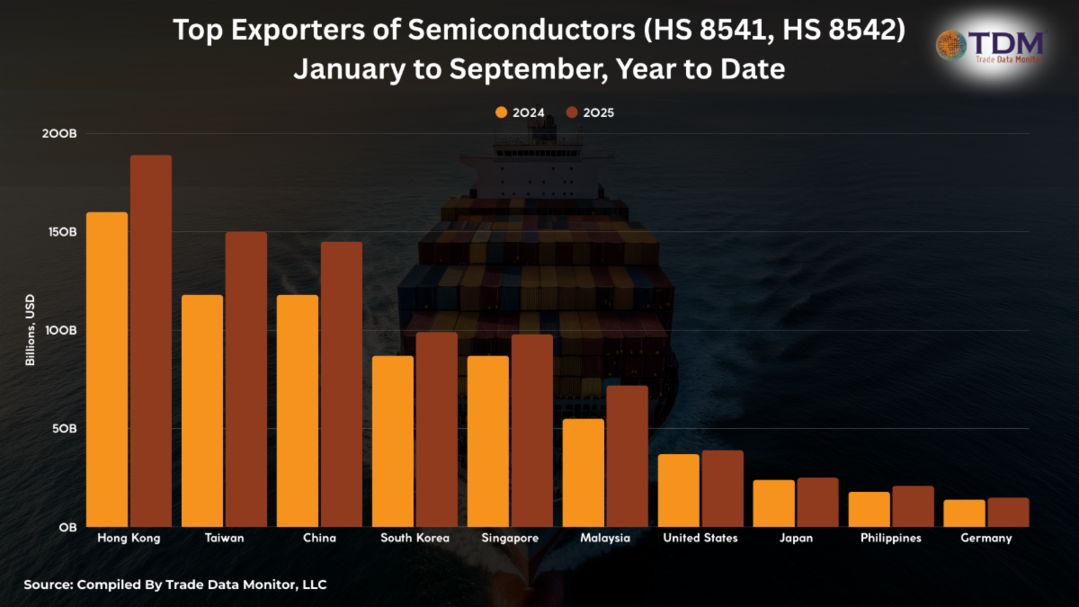 | 1. The Asian Chip MiracleThe chip market is expected to reach around $750 billion in 2026 and hit $2 trillion by the early 2030s. In its latest incarnation that trend is being led by Asia. Eight of the world’s top 10 exporters of chips, classified under HS8541 and HS8542 are Asian. Only the U.S. and Germany crack the top 10. |