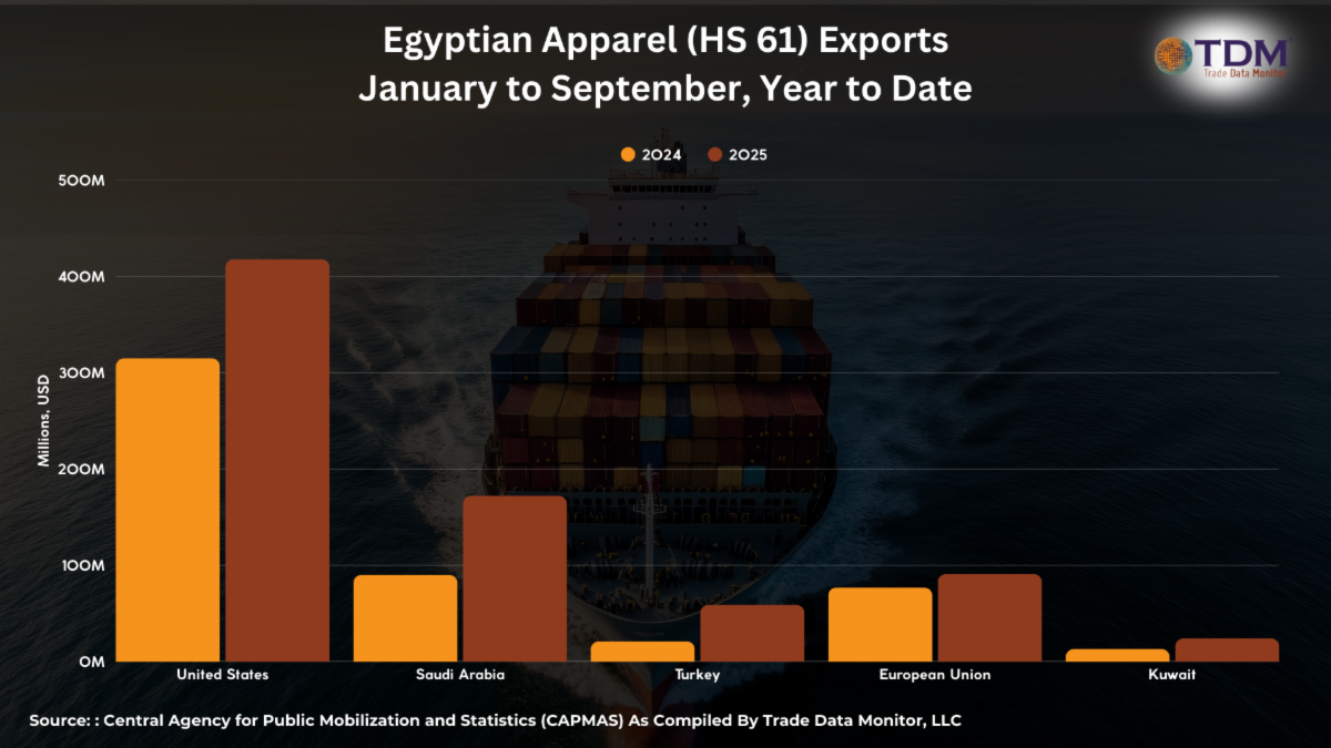 8. Trade Case Study: EgyptTrade coverage focuses on the big countries, but we’ve been studying smaller players, and one interesting case study is Egypt. It’s been boosting apparel exports, a sign of a country’s increasing prosperity and competitiveness on export markets. In 2025, Egypt clocked the biggest increase in apparel exports, shipping out $2.6 billion in the first nine months of 2025, 30.7% more than the year before. The second highest increase was registered by Cambodia at 16.9%, and no other country improved by double digits.